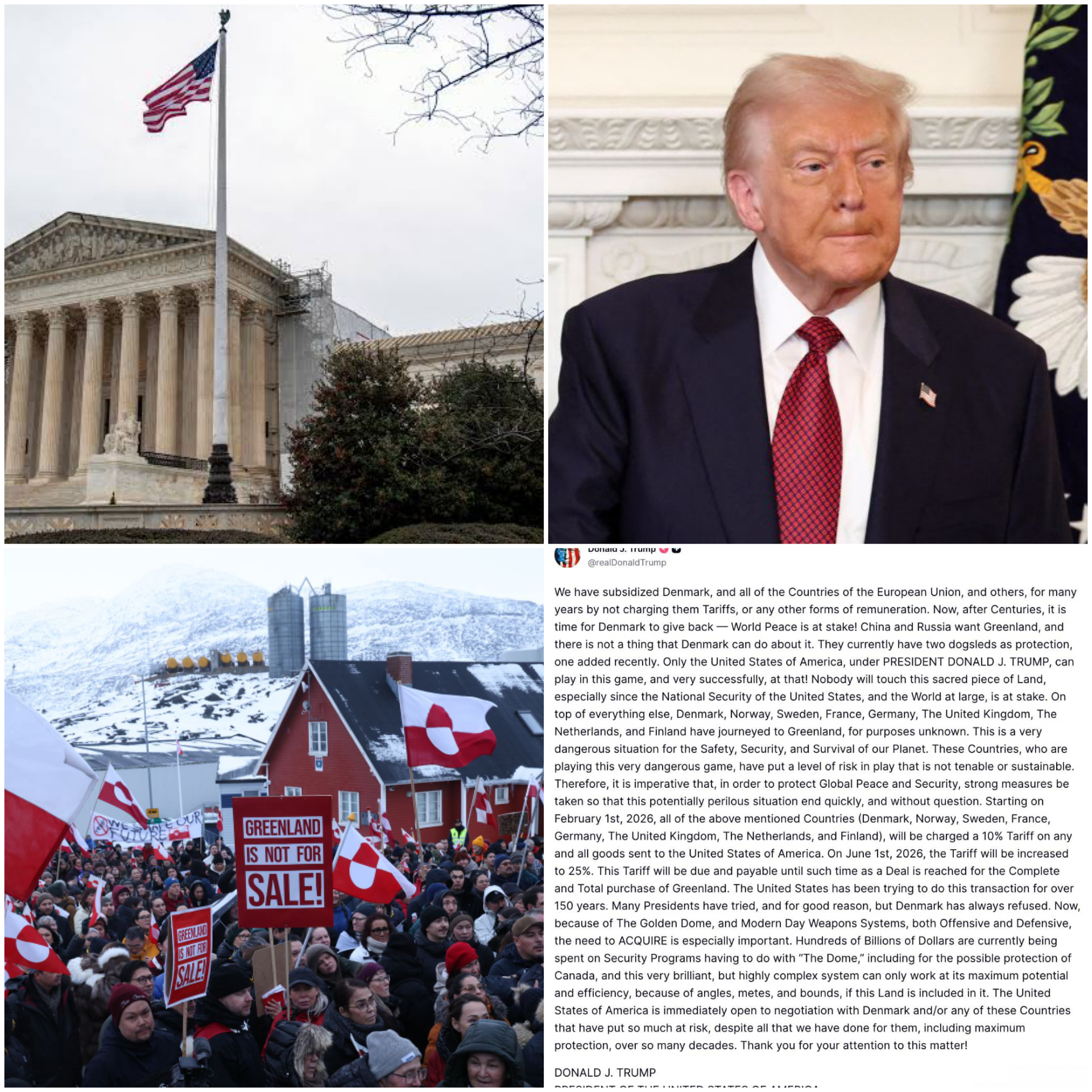 BREAKING: Supreme Court Reacts as Trump Slaps Europe With 10% Tariffs — Warns of 25% Unless U.S. Gets Greenland New tariffs on Denmark, Norway, Sweden, France, Germany, the UK, the Netherlands, and Finland take effect February 1, with a possible jump to 25% by June 1. “It is time for Denmark to give back,” Trump declares — and this time, the Supreme Court’s ruling has everyone talking.