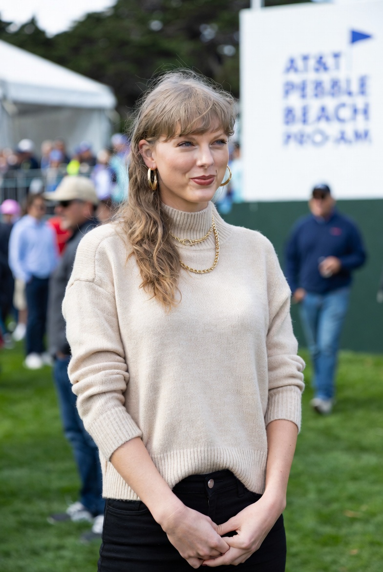 PEBBLE BEACH, Calif. — In a surprise appearance that sent social media into a frenzy, pop superstar Taylor Swift made a dazzling showing at the AT&T Pebble Beach Pro-Am golf tournament, turning heads with an effortlessly elegant luxury ensemble.